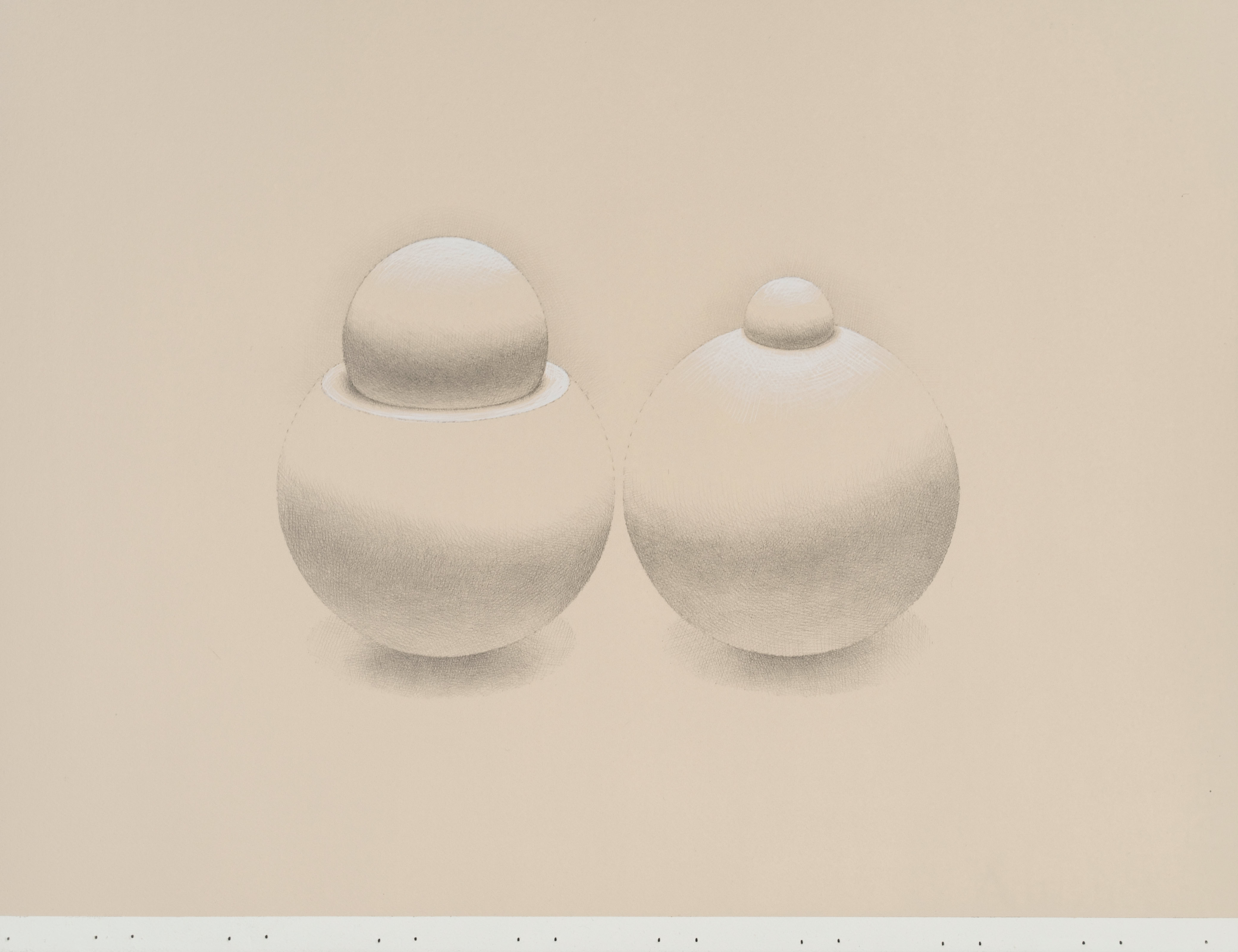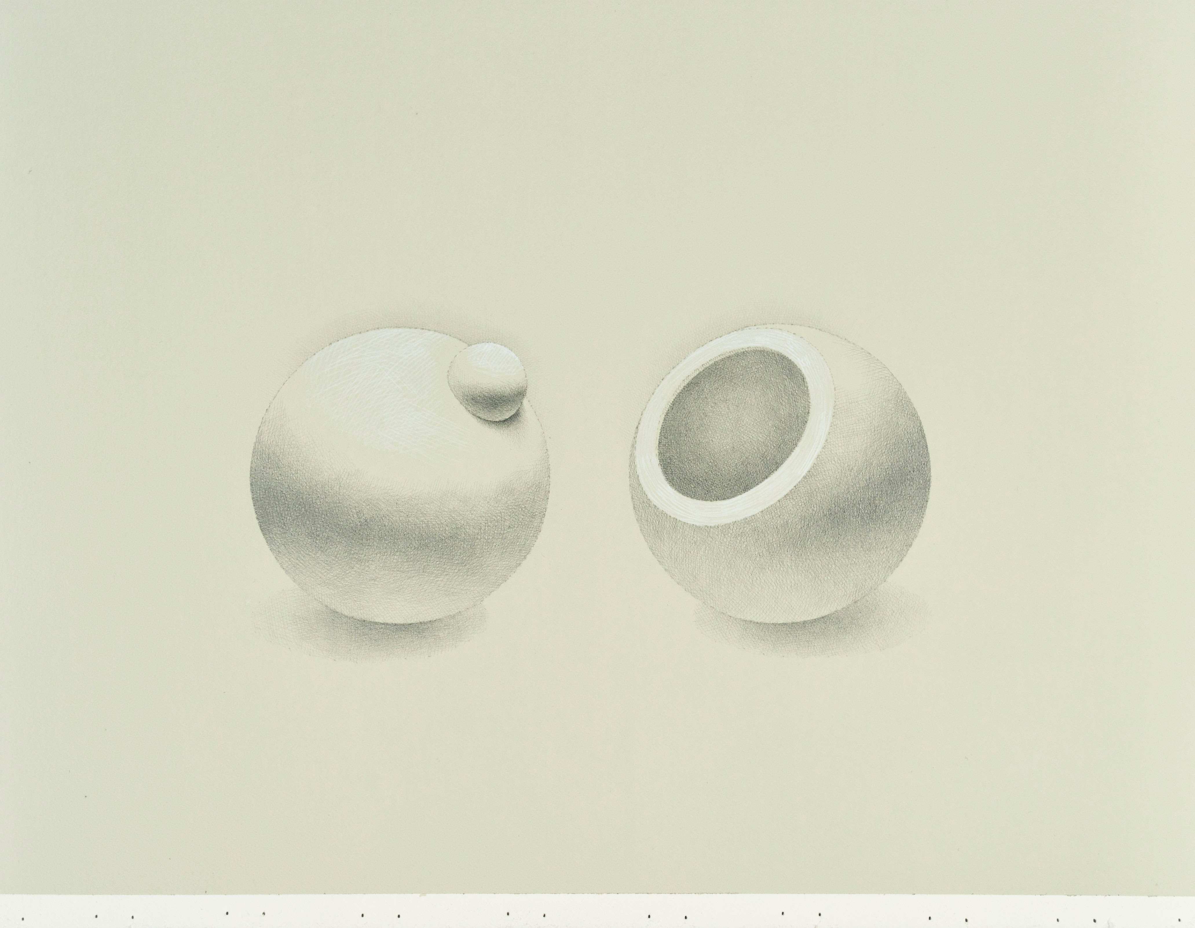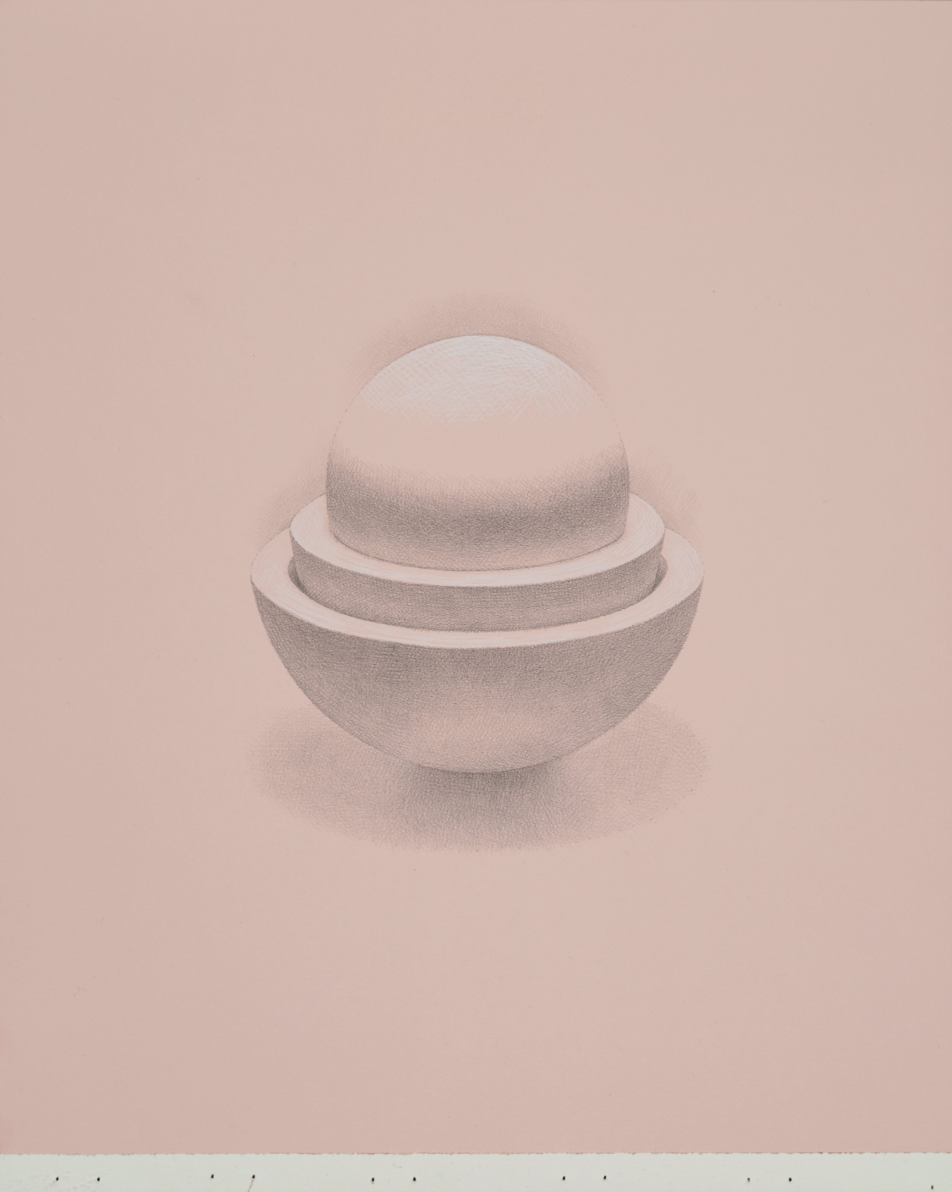 Squaring the Sphere, 2022, silverpoint and palladiumpoint with white gouache on prepared paper, 10⁃x⁃12⁃inches