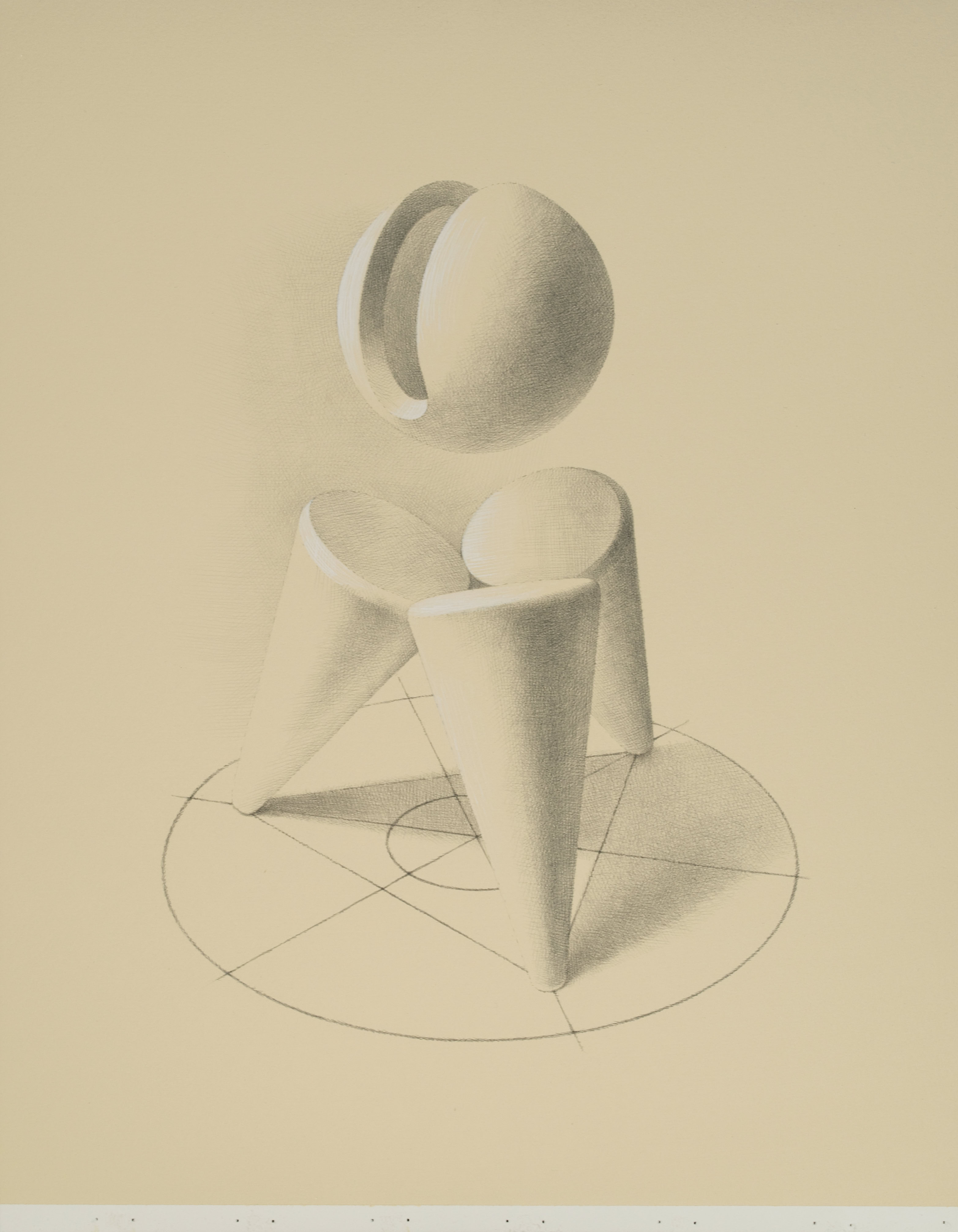 Platonic Solid, 2021, silverpoint on prepared paper, 10⁃1/2⁃x⁃12⁃inches. Private Collection.