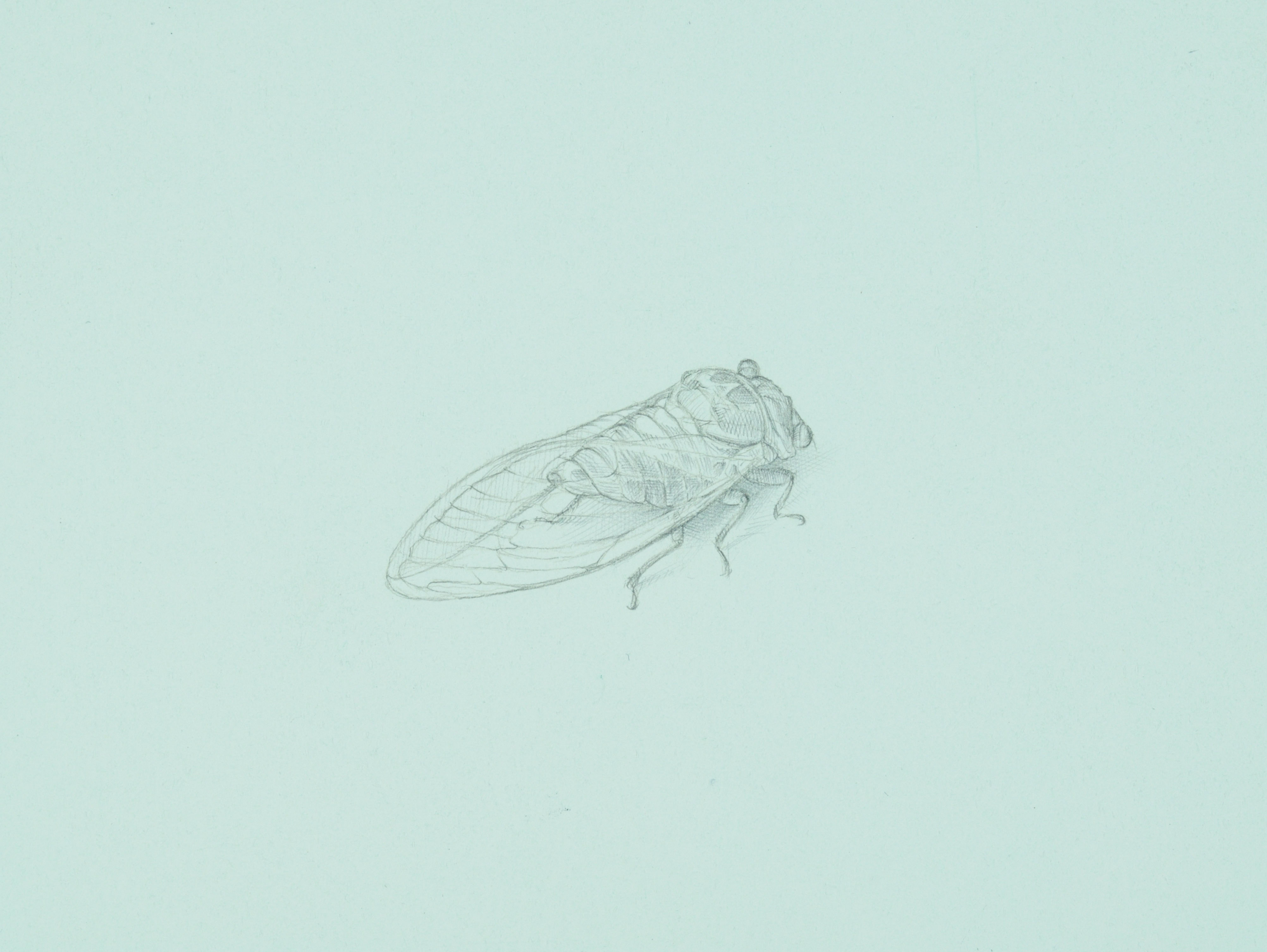 2014 Bush Cicada, 2018, silverpoint on prepared paper, 5⁃x⁃7⁃inches