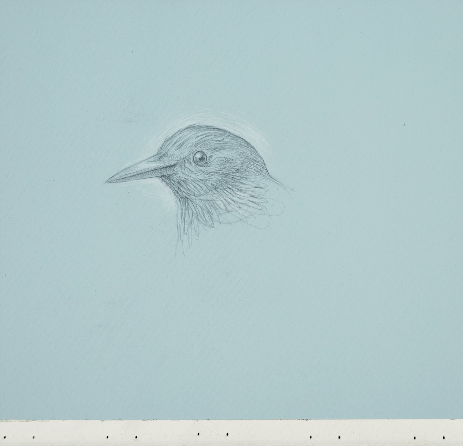 Blue Jay (Cyanocitta cristata), 2014, silverpoint on prepared paper, 8⁃x⁃9⁃inches. Private Collection.