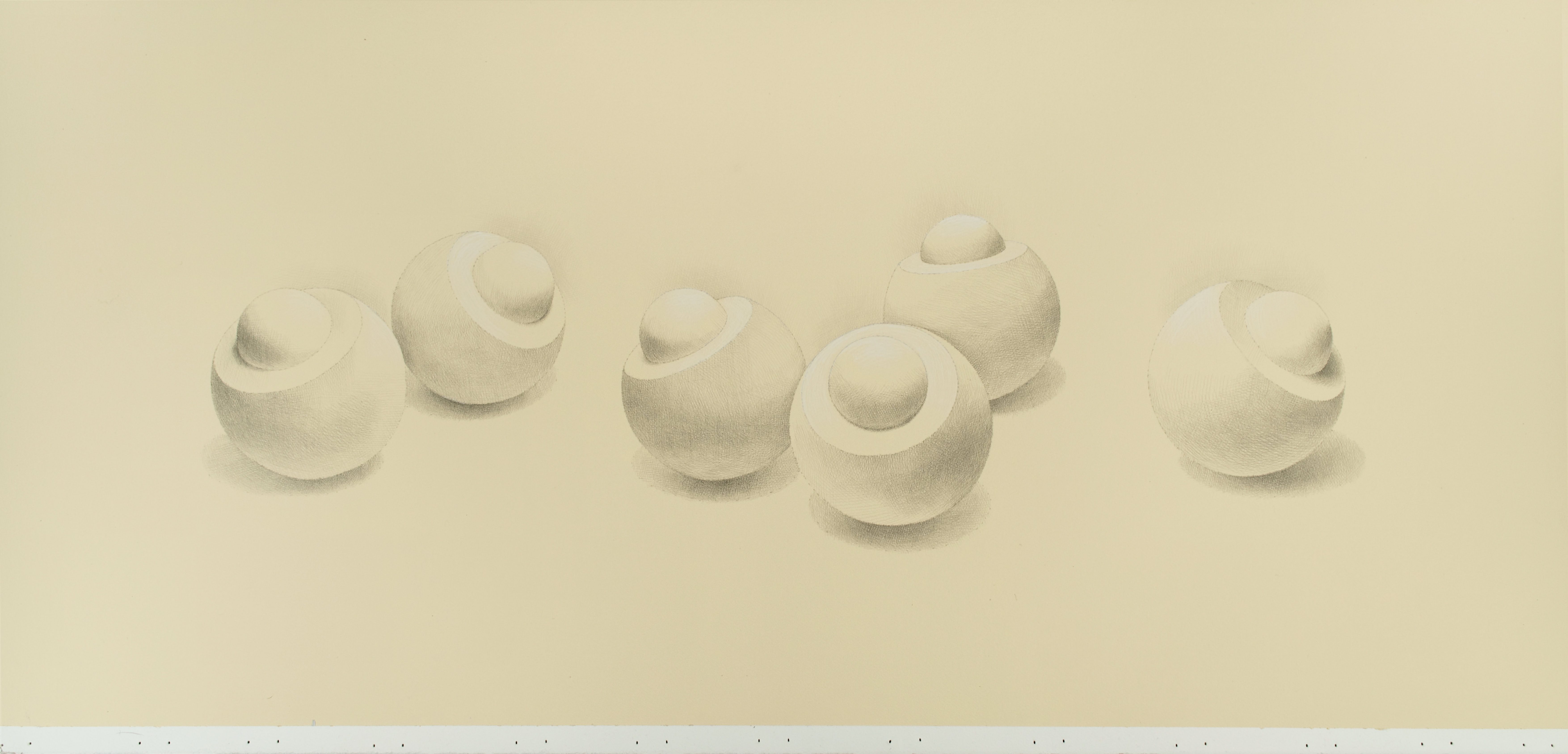 Six Seckels, 2007, silverpoint on prepared paper, 12⁃x⁃22⁃inches. Private collection.