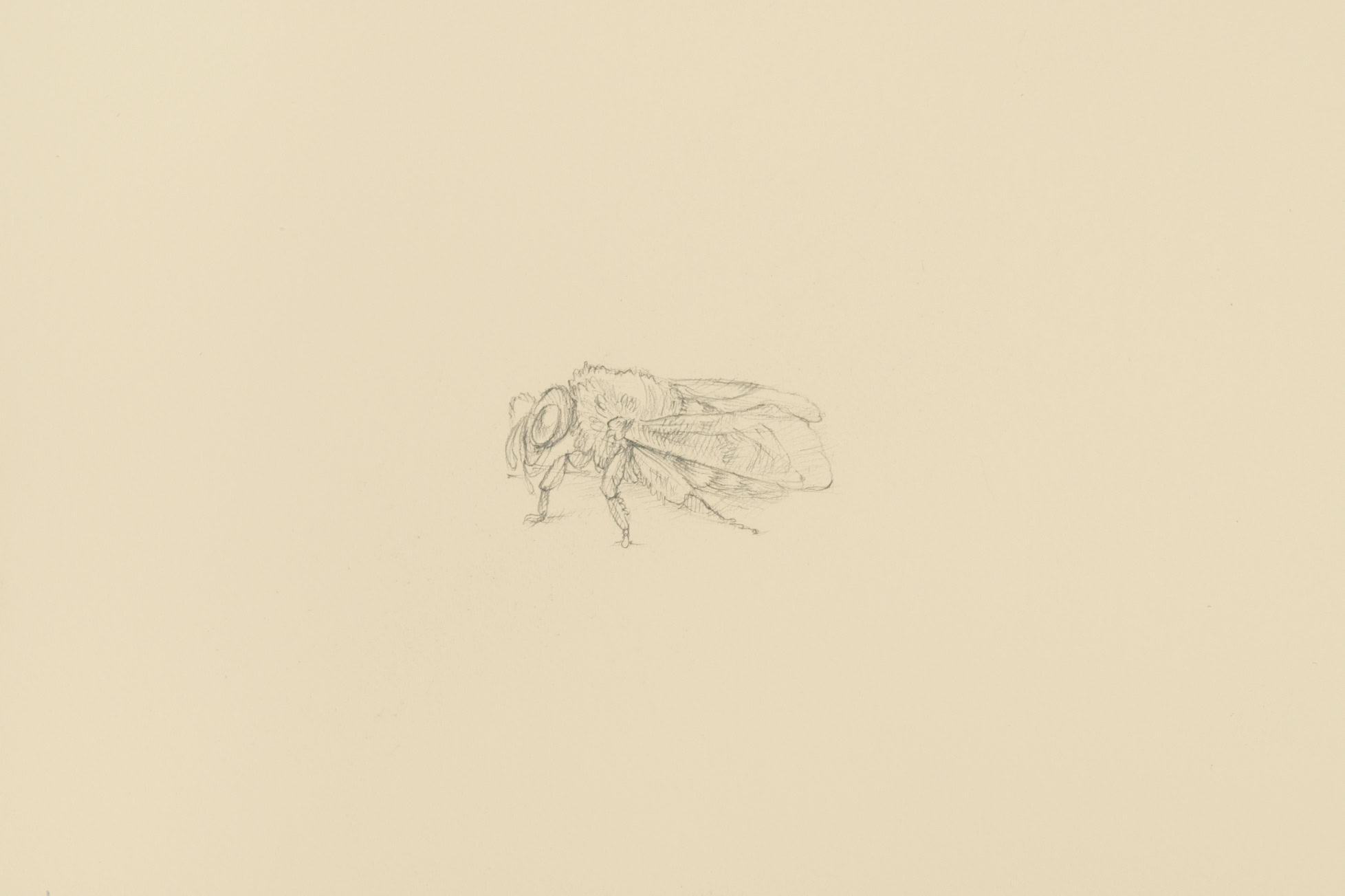 2014 Bush Cicada, 2018, silverpoint on prepared paper, 5⁃x⁃7⁃inches